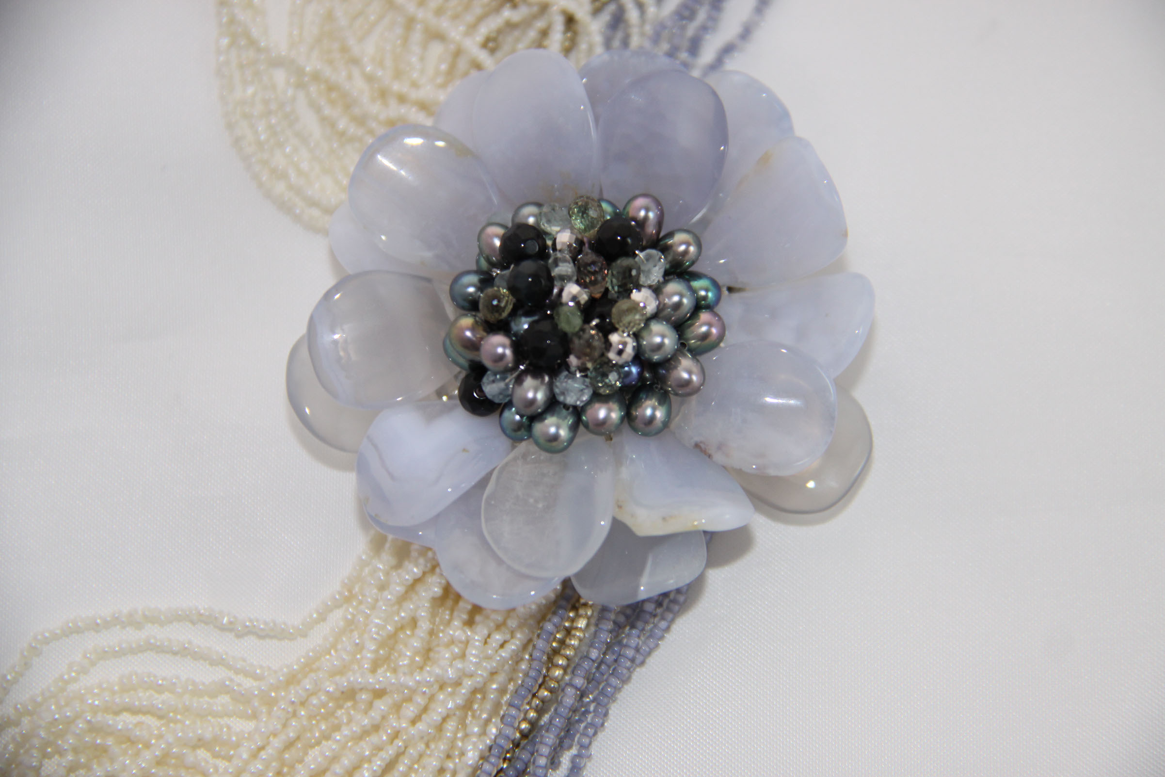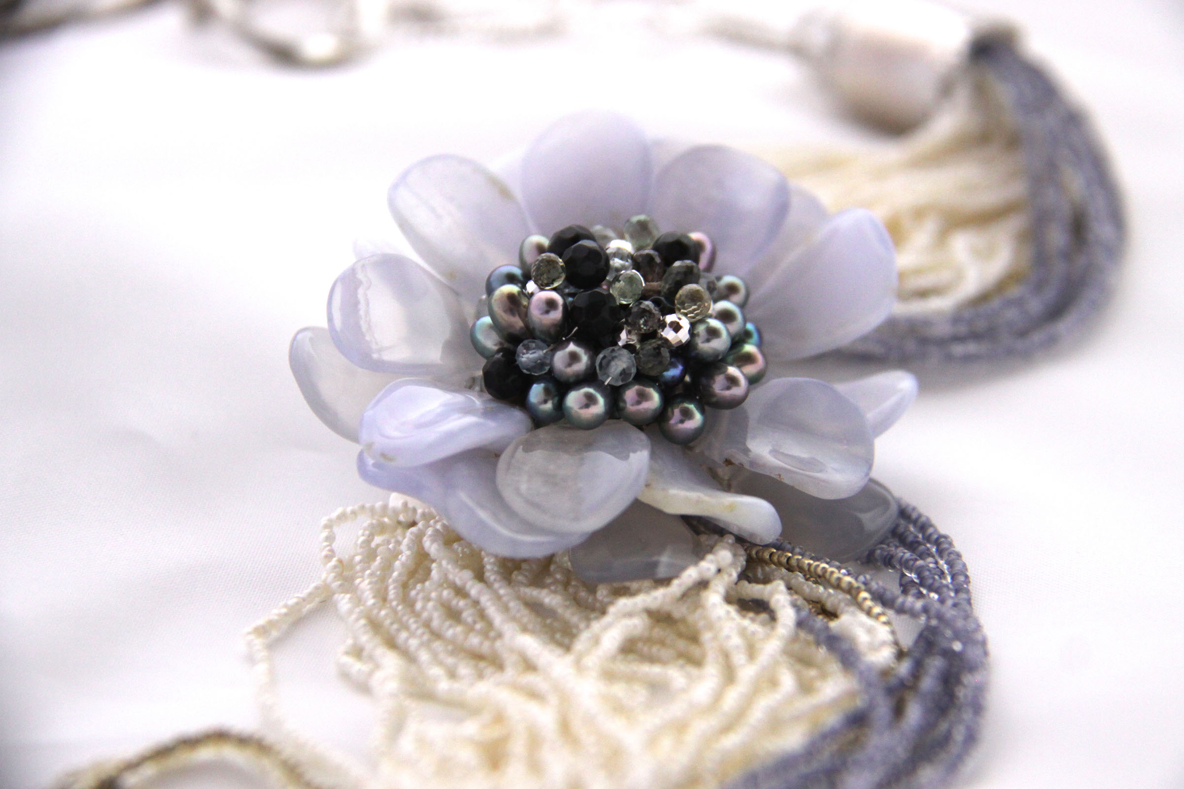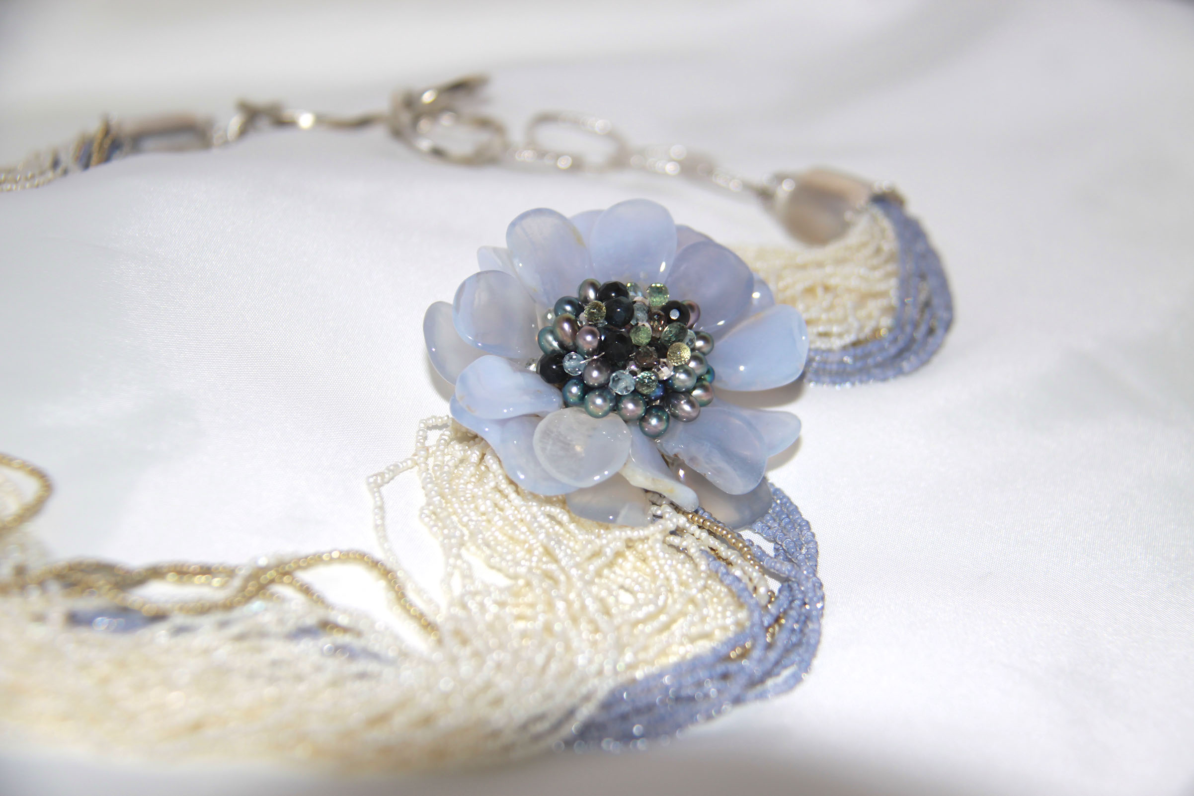 etra -necklace- SV925 ブルーカルセドニー,淡水パール(ケシ),ムラーノガラス(コンテリエ)
